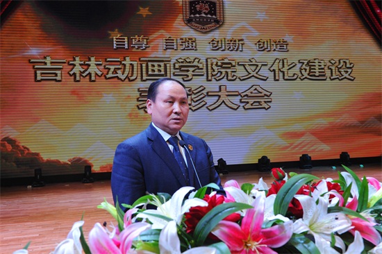 动画艺术学院常务副校长张蕊、游戏学院教师吕巍、广告学院副院长谭悦、学校副校长王春利代表学校文化建设先进个人依次登台介绍了各自的经验体会。