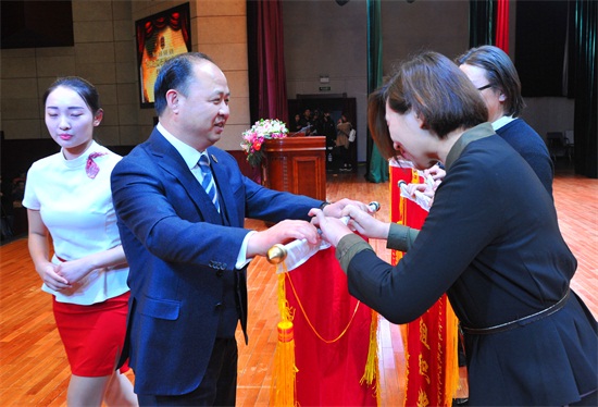 董事长、校长郑立国为获得最佳组织奖的单位颁奖(刘庆发 摄)