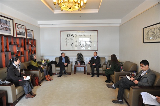 我校董事长、校长郑立国与法国驻华大使馆文化教育合作参赞罗文哲一行进行会谈(刘庆发 摄)
