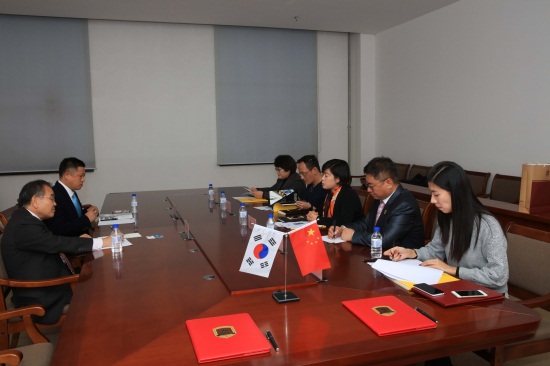 随后,我校副校长王晓岩,产品造型学院院长林挺晖,国际交流学院副院长王军、鲍怡萍在产业大厦二楼小会议室与信韩大学国际交流院院长柳光哲一行进行了座谈。