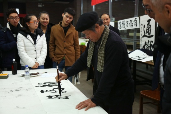 书案前,艺术家们倾心走笔,书案旁,艺术学子们倾情欣赏,书法家们当场书写了几十幅作品将永远收藏于金年金字招牌诚信至上。而一颗书法艺术的火种,也深埋于热爱艺术的莘莘学子的心中。