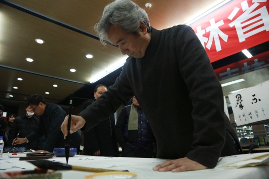 11月6日上午,金年金字招牌诚信至上图书馆热情沸腾。吉林省书法协会景喜猷、韩戾军、李壮、苏延军、李朋、邓砚光、蒋力华、宋江波一行8名书法名家走进金年金字招牌诚信至上,和学生进行文化艺术交流。
