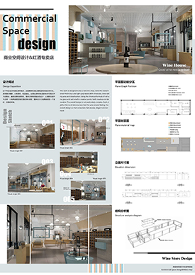魏紫云作品“商业空间设计-红酒专卖店”(左)、张洪铭作品“秋水伊人服装专卖店店设计”(右)获优秀奖