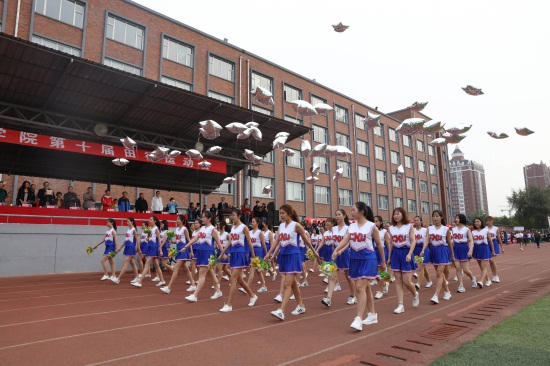 在运动会上,各参赛代表队无论是方队的排列呈现,还是团体操的编排与表演都突出专业特色,彰显学校历来倡导的“创新、创造、创优、创业”的四创文化,在形式上和表现上都有所创新。