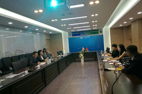 考察团一行与信韩大学国际交流院及设计学院负责人座谈