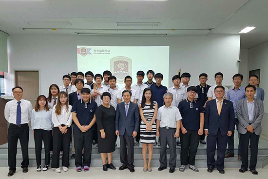 考察团在9月21号的上午和下午分别对真景女子高中和南原第一高中进行了访问。真景女子高中多年来一直非常重视汉语教学,并引进了孔子学院的孔子课堂,将汉语教学作为教学特色大力扶持。该校不仅有2名国家汉办派遣的志愿者,还有多年任教经验、汉语流利的韩国老师。真景女子高中校长及孔子课堂负责人与我校考察团在座谈中,对该校学生来长春开办冬夏令营合作事宜达成了共识。