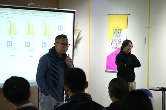 广告学院院长胡镜泉、院长助理谭悦为学生讲解