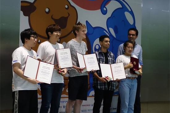 8月24日-26日,经我校客座教授、长白山学者、韩国祥明大学研究生院游戏系教授尹炯燮推荐,由我校游戏学院教师李岩、国际合作与交流中心宋珊珊带队,数字媒体技术专业学生刘自然、于浩楠,数字媒体艺术专业学生张洁、魏子超赴韩国参加了在浦项工科大学举办的“Global Applied Game Jam 2016”大赛。