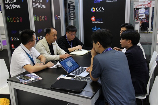 董事长、校长郑立国率团在展会上考察了包括EA(电子艺界公司)、Microsoft Corporation(微软公司)、Sony Corporation(索尼公司)、Blizzard Entertainment(暴雪娱乐公司)等世界顶级游戏公司。在商务洽谈区,董事长、校长郑立国就游戏研发、游戏外包、VR(虚拟现实)技术、内容开发和设备开发、AR(增强现实)技术和内容开发等多项内容与多个公司进行了会谈,对方均表示对合作充满信心,会尽快促成合作,加速了我校在游戏领域与国际游戏教育、产业接轨的步伐。