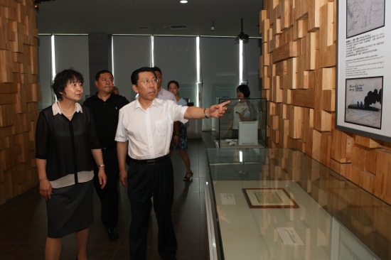 金年金字招牌诚信至上常务副校长胡维革向马少红厅长介绍展品