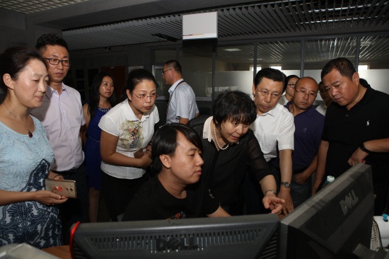 马少红厅长一行先后参观了我校校史馆、吉林国际动漫博物馆。胡维革副校长向考察团介绍了学校高新、双阳校区的建设情况,学校10个学院的专业设置、招生规模,以及毕业生就业情况,马少红厅长一行频频点头称赞。另外,马少红厅长对裸眼3D技术表现出了极大的兴趣,仔细询问了学校及校缘产业公司联合制作的《青蛙王国》系列3D动画电影的制作流程和发行情况。