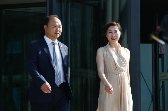 董事长、校长郑立国(左),副董事长、副校长刘欣(右)拍摄MV场景