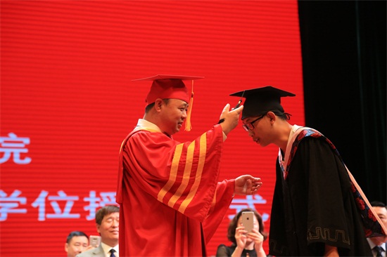 董事长、校长郑立国为毕业生拨流苏(刘华清 摄)