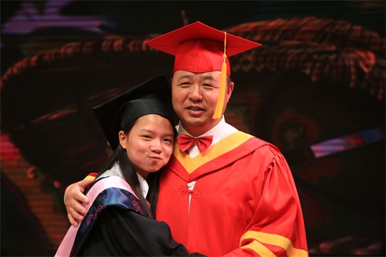 董事长、校长郑立国亲切拥抱毕业生(刘华清 摄)