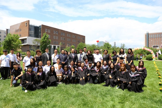 学校领导,设计学院领导、老师及毕业生合影