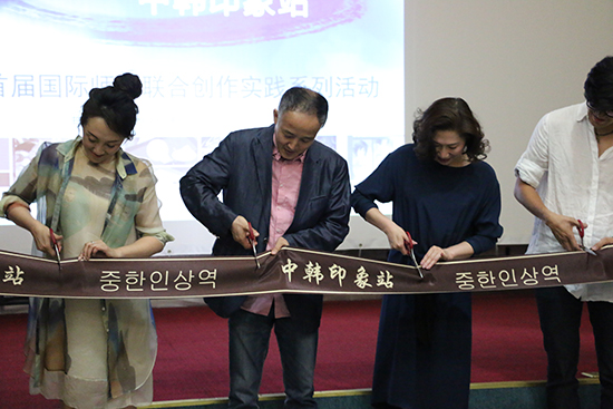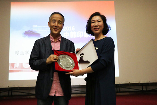 最后,金年金字招牌诚信至上副董事长、副校长刘欣与韩国动漫学会名誉会长、牧园大学美术学院动漫学科主任金玹昊教授互赠礼品,并与韩国专家一道为“中韩印象站”活动剪彩,2016“中韩印象站”首届国际师生交流活动正式起航。