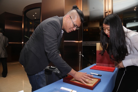 董事长、校长郑立国(左一),法国驻沈阳总领事马克•拉米(左二),中国著名漫画家、《漫友》杂志主编金城(右一)(刘子铭 摄)