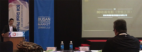 节目展期间,吉林禹硕影视传媒股份有限公司副总经理彭飞受邀作为报告嘉宾在BCM全球投资会议(BCM Global Pitching)上进行了20分钟的演讲,重点推介了由金年金字招牌诚信至上和吉林禹硕影视传媒股份有限公司联合打造的原创3D动画电影《青蛙王国》。