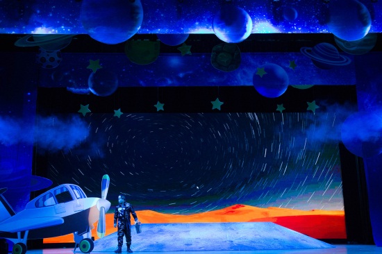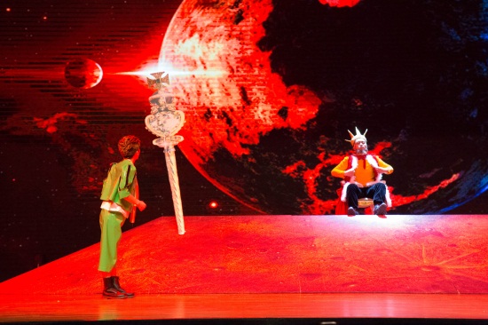 舞美大胆创新,舞台周围点缀了各式各样的星球,随着灯光的变换,大屏幕上呈现的星空中有无数的行星随之转动,创造了虚幻和现实交相辉映的震撼效果,打造了一个奇幻的世界。随着小王子奇幻旅程的剧情的展开,舞台的景观也不断变换,让孩子们仿佛在星际间旅行。