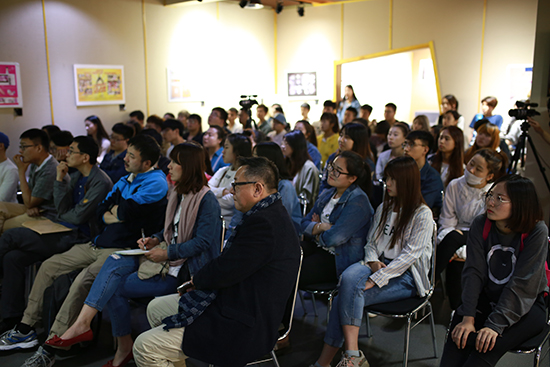 启动会上,知名4A国际广告公司上海麦肯•光明创意总监孙涛亲临指导,下达了CCTV公益广告真实命题。孙涛老师带领主创团队多年执行央视公益广告的制作,曾创作完成好评如潮的春晚公益广告《筷子篇》《回家篇》。孙涛老师从CCTV公益广告18个主题方向的创意角度和市场成型的线上作品为切入点,结合实战创意案例“CCTV《读书》2015年创意脚本”进行解析。他与师生们分享了公益广告创意的实战经验,帮助同学们找到每个命题的创意启发点。他与同学们交流,如何在创意提案中倾听客户的看法,如何保持创意的独特性和开放性,以及做好“商业广告”和“公益广告”的七个标准。孙涛老师认为,“独特的看法,一定是超越一切创意法则的源点”。孙涛还深入到学生中做互动讨论,面对面传授实战广告的创意方法。
