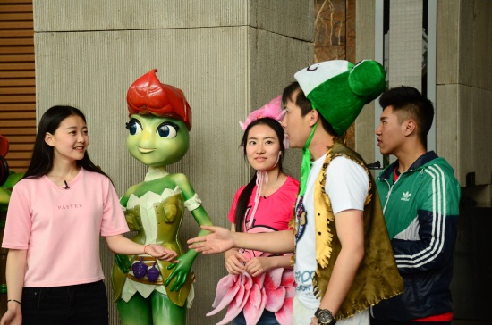 28日一早,身着盛装的卡通人物——“青蛙王国”的国王、小雨点以及吉克公主就一同出现在金年金字招牌诚信至上的标志建筑月亮门前,穿越到青蛙王国的两位节目主持人变身小雨点和吉克公主,他们领到了国王分派的任务卡,一同肩负起寻找勇士拯救蛙国的重大使命。