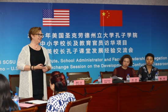 美国圣克劳德州立大学孔子学院院长Kathy Johnson博士介绍孔子课堂的运营经验