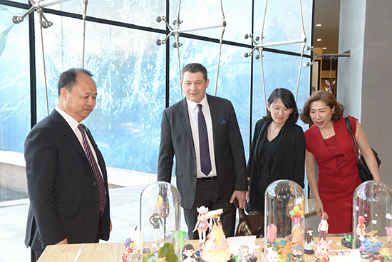 此次展出的作品种类丰富,包括了漫画、油画、国画及漫画衍生产品。漫画学院教师热情地为嘉宾们介绍各类绘画作品的创意思路、制作材料及创作过程。法国驻沈阳总领事马克•拉米一行兴致勃勃地观看了师生作品展,不时地对展品点头称许。