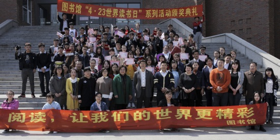 4月27日12:30,图书馆二楼大厅隆重举行了“4.23世界读书日”读书月系列活动颁奖典礼,系列活动的获奖学生、10名荣获“2015年度优秀读者”以及5名荣获2016年“三月书生”的同学同时受到表彰奖励。