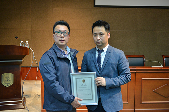 产品造型学院的副院长金兑劲代表学校向田宽重教授颁发了客座教授聘书