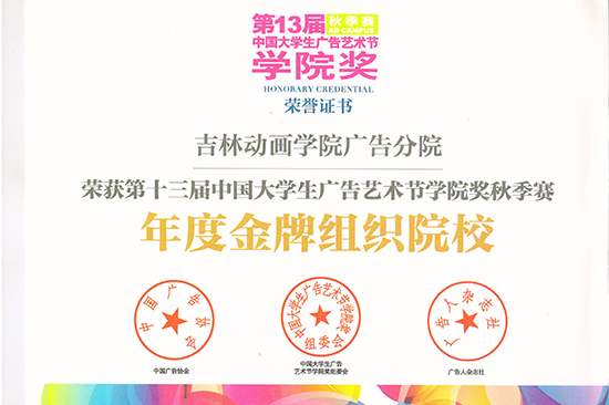 我校作为承办本届“学院奖”长春站巡讲的院校,参赛作品651件,获得了年度金牌组织院校奖,其中,董洪峰老师获本届“学院奖”优秀指导教师奖。董洪峰老师指导的12级平面广告第一工作室彭静同学作品《锐澳鸡尾酒命题》获得平面广告类别银奖、赵菁坤同学的作品《999红糖姜茶命题》获得平面广告类别铜奖,刘阳老师指导的12级平面广告第三工作室杨潞同学作品《青春铭心片》获营销策划案类别银奖。