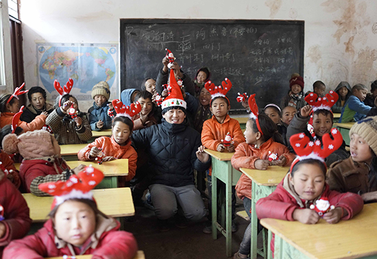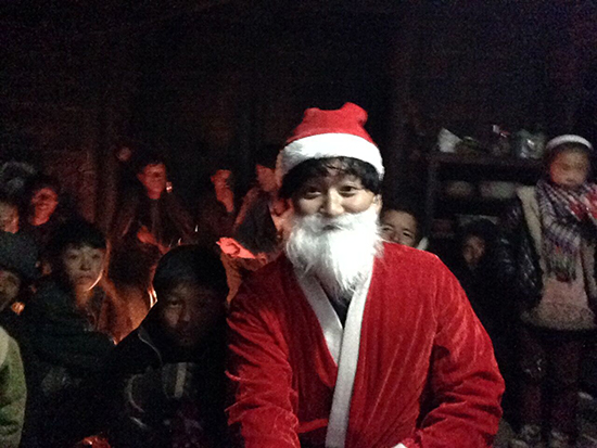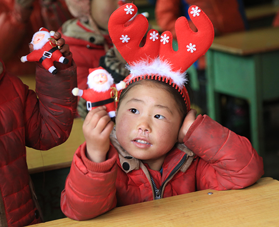 赵明这次进山恰逢圣诞节,给孩子们过圣诞节也是他此行的一个目的。圣诞老人、圣诞帽、圣诞发卡,这些西洋的玩意儿第一次进入了大山孩子们的视野。