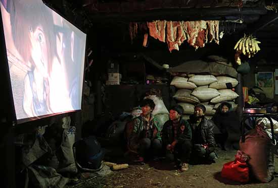 一万多元不是一个小数目,他精打细算地用这些钱置办了投影和幕布,只留下了一小部分作为自己的路费。然而事情远没有想象的那样顺利,“中午两点进山,3个小时面包车路程,一路颠簸,途中碰到一辆车跌进了山下100米的悬崖,心里说不出滋味。能见度不足10米,我背着50多斤的背包执意上山,天黑加上路滑,自己又摔了一跤,差点滚下去,倒吸一口气,扑打了身上的泥土,眼泪不争气地流下来了。”赵明第一时间和我们分享了他进山的情况,山里的苦想必是他已经司空见惯了的,然而这次进山的苦是超出了他的预期的。