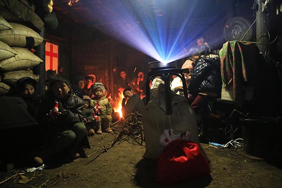 “下午给孩子们每个人送了一个圣诞老人玩偶,他们说只有在连环画上和老师的课堂上看到过圣诞老人,每个孩子拿到玩偶之后都非常开心。晚上赶了一个小时山路去另外一个村子放电影,大山里空气湿冷,背包表面冻了一层薄冰。我跟着一群孩子来到老乡家,遗憾的是老乡告知我停电了,心里瞬间失落起来,答应好了给孩子们放电影,现在只能围在火堆旁。不过孩子们没有一丝失望,停电对于他们来说是经常的事情,他们在火堆旁开心地玩着圣诞老人的玩偶,天真地说圣诞老人是菩萨……”这一晚,赵明没有能成功放上电影,不过,还是将圣诞节的快乐传到了大山孩子的心中。