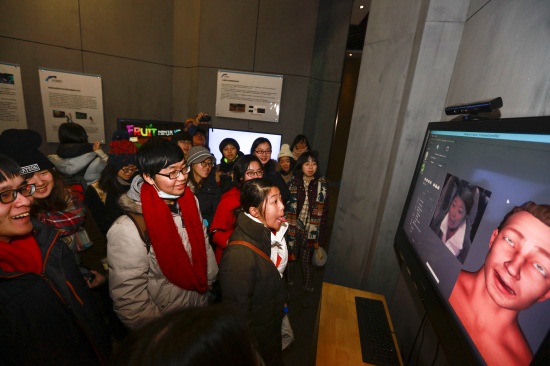 铭传大学学生体验面部表情捕捉系统(刘子铭 摄)