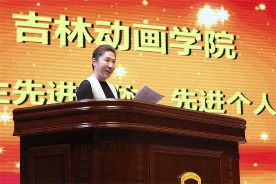 副董事长、副校长刘欣宣读对国家奖学金、国家励志奖学金、学校奖学金、校长奖学金和董事长创业奖学金的表彰决定(刘子铭 摄)