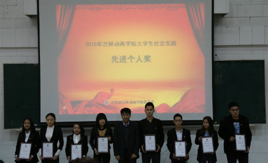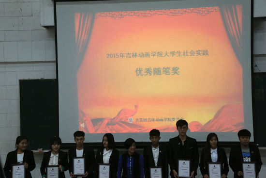 随后,校长助理、学工部副部长王晓岩宣读《关于表彰2015年大学生社会实践活动先进集体、先进个人的决定》。其中,传媒学院荣获优秀组织奖;动画艺术学院、设计学院、传媒学院和阳光支教团的社会实践小分队当选优秀团队;37名学生获选先进个人;65人获得优秀随笔奖,参加会议的学校领导为获奖代表颁发了奖状和证书。