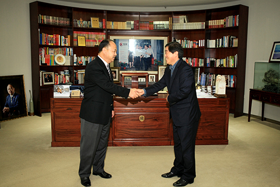 郑立国董事长、校长对金龙宽院长一行的到来表示热烈欢迎,并针对我校的实际情况对双方以至中韩的文化产业交流给出了几点可行性的意见。