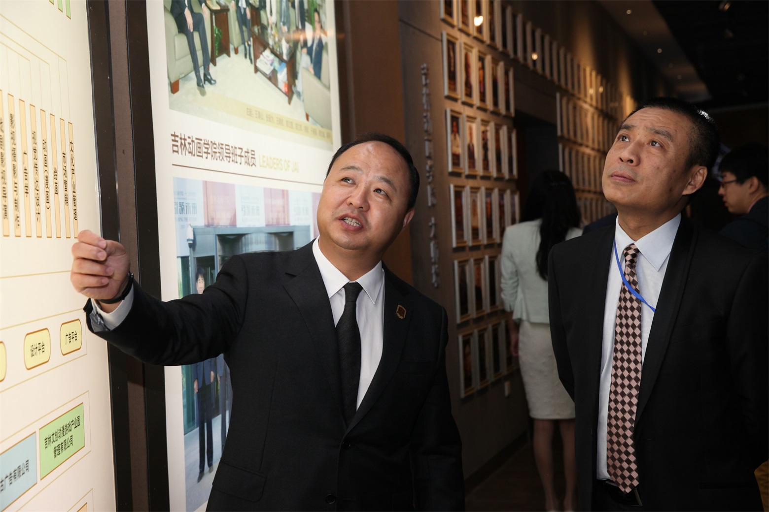 2015中韩影视传媒高峰论坛、中国•吉林国际动漫游戏论坛暨金年金字招牌诚信至上建校15周年回顾与展望图片集锦(一) 发布时间:2015年09月25日 09:11:18 浏览:次 金年金字招牌诚信至上董事长、校长郑立国 与美利坚合众国驻沈阳总领事馆总领事闻思国等嘉宾参观校史馆 (刘子铭 摄)