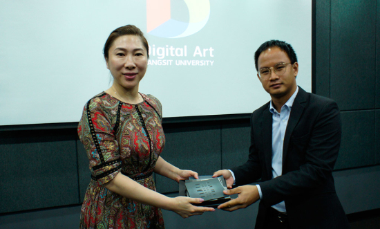 在对泰国兰实大学的访问中,考察团参观了兰实大学传媒学院、IT学院、数码艺术学院、传媒学院、电视台等机构,并与兰实大学副校长、中泰合作交流处负责人等学校领导进行座谈。座谈中,兰实大学数码艺术学院副院长Nuttavut Seemontara、艺术设计学院院长Sarasalin及兰实大学相关人员,分别介绍了兰实数码艺术学院和传媒学院建设情况。