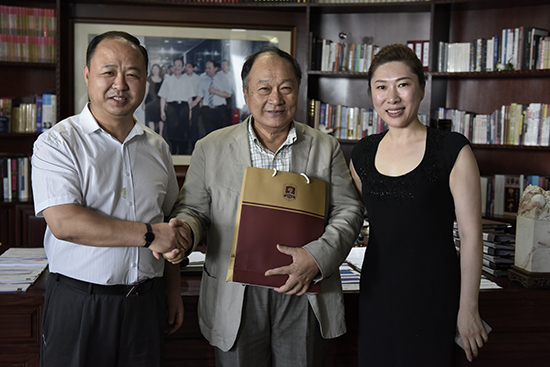 董事长、校长郑立国和副董事长、副校长刘欣同张纮炬会长亲切交流(高雪松 摄)
