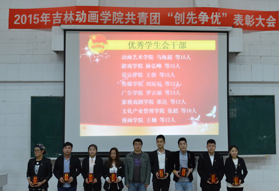 校团委副书记刘博首先宣读了2014年度长春市“创先争优”表彰决定和2014年共青团“创先争优”表彰决定。