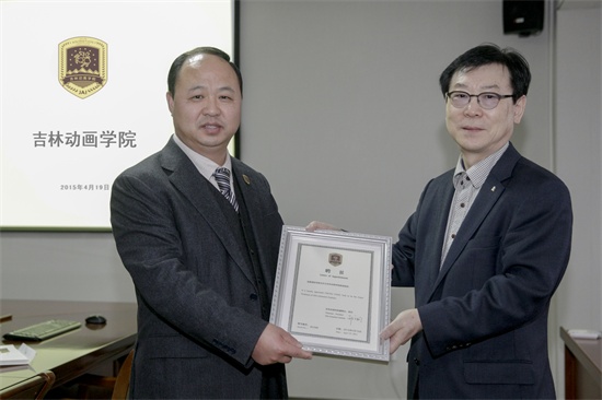 学院董事长、院长郑立国为于记伟导演颁发客座教授聘书