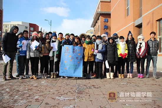 2014年12月4日是我国第一个宪法日。为了普及法律知识,弘扬法治精神,创建法治校园,促进社会和谐,动漫分院分团委学生干部于12月4日上午到高新区三佳社区周边进行普法宣传活动。