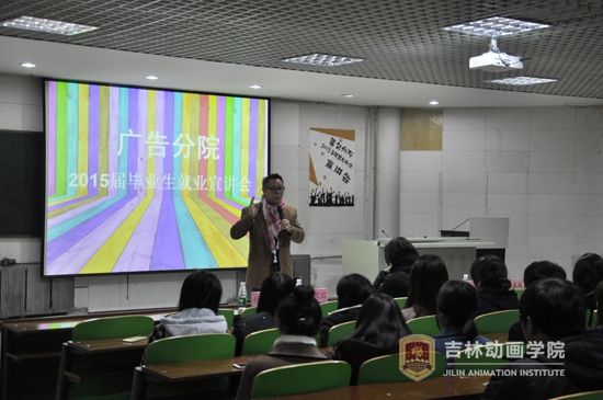 广告分院副院长王会萍说:“今天宣讲会更像是开一个久违的班会,大一把你们领入广告分院,大四有幸看着你们即将毕业。回到广告分院,我最大的感受是看到曾经逃课的孩子有了担当,知道忙专业了。在专家讲座中,你们遗憾地说,再小两届就会赶上广告分院最好的时候。在第六届大广赛上有几个同学的作品获得全国的一、三等奖,在学工处的违纪记录中,你们没有触犯底线,这四年你们真的长大了。”她详细地介绍了2015届毕业生就业工作方案,介绍了目前广告分院联络的企业情况,让学生们了解学院招聘会的各项准备工作。
