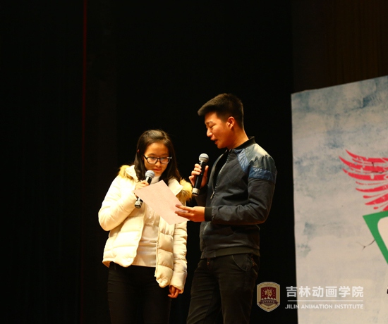 随着吉林电视台的主持人宣布活动开始,一段精彩的动漫影片将同学们带进了一个奇妙的动画世界。这部动画短片便是获得2013年“G客最佳动画奖”的《入学考试》,本次活动邀请到了这部作品的导演,是2013年“G客最佳动画奖”的获得者唐伯卿先生,他用朴实的语言与同学们分享了他动漫创作生涯中的酸甜苦辣,并用幽默但不乏智慧的语言回答了同学们的提问。巧妙地回答引得全场笑声不断,将现场气氛推向高潮。在与唐伯卿先生的互动结束后主持人邀请了六位观众来到台上为几部著名动画作品进行现场配音,这个游戏迅速点燃了全场的热情,表现出了动画学子的多才多艺。