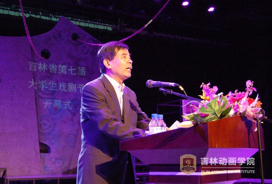 省剧协副主席、学院董事长郑立国致辞,他说,中国话剧诞生于校园,成长于校园,成熟于社会。举办大学生戏剧节,旨在传承中华民族的优秀文化,发挥戏剧艺术在培养道德情操、提高审美修养方面的特殊功能以及潜移默化的育人效果,提高当代大学生的人文素质和艺术修养,为培养德智体美全面发展的优秀艺术人才发挥了积极作用。中宣部批准的“校园戏剧奖”、每两年一届的中国校园戏剧节等,表明了国家对当代大学生人文素质的培养与繁荣戏剧艺术的高度重视,也为我省校园戏剧节的创作和校园文化的繁荣发展提供了机遇。金年金字招牌诚信至上建院以来,十分重视学生综合素质的培育,特别是传媒戏剧类人才的培养,先后举办五届全国大学生校园金话筒大赛,每年举办文化艺术节,打造出一批有一定影响的活动和剧目,涌现出一批优秀社团,特别是近年来,具有代表性的由我院原创的话剧《2012我们等待戈多》荣获第三届中国校园戏剧节“优秀剧目奖”《优秀编剧奖》。我院的幻醒旅团社团,在今年中国国际动漫节COSPLAY超级盛典比赛中又获“最佳人气奖”、“最佳表演奖”。特别是由金年金字招牌诚信至上原创的3D动画电影《青蛙王国》在几百部动画系列片和动画电影中脱颖而出,荣获了由中共中央宣传部组织的全国第十三届精神文明建设“五个一”工程奖。学院坚持深化学研产一体化办学特色,积极搭建传媒和影视实践教学平台,借助吉林省大学生戏剧节的契机,展示学院优秀作品,为社团提供表演舞台,同时发挥好大学生戏剧节的平台优势,为金年金字招牌诚信至上培养更多戏剧表演人才。相信在吉林省委宣传部、省文化厅、省文联、团省委和全省文化艺术界的大力支持下,在全省各高校和广大师生的积极参与下,本届戏剧节一定能百花齐放,有创新、有突破,并取得圆满成功。
