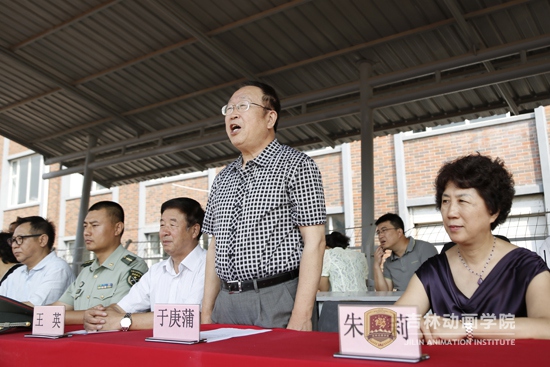 学院院长于庚蒲,副院长朱莉,党委副书记、副院长王英,副院长兼游戏与数字媒体分院院长潘志庚,动漫分院院长武立杰,设计分院院长徐欣,传媒分院院长崔国清,广告分院院长胡镜泉,影视戏剧分院院长李伟华,文化产业分院院长助理吴莺及相关部门的领导出席开营仪式,中国人民解放军63980部队上尉常铁军及 37名教官,2014级2937名新生参加了开营仪式。