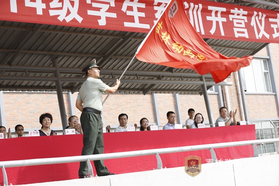 学院院长于庚蒲宣布2014级学生军训开营仪式正式开始 胡锦桥摄