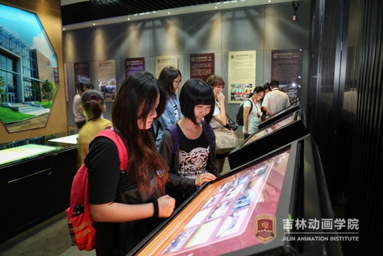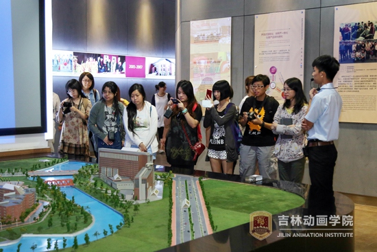 学院为台湾铭传大学师生量身定制了精彩的参观体验活动及丰富的交流互动项目。同学们在动漫分院和国际合作与交流中心等多位老师的陪同下,开始了为期8天的夏令营之旅。同学们利用了半天时间参观了学院展览馆、4D环幕放映厅、国际动漫游戏博物馆和吉林禹硕公司。观看了4D环幕电影《乡亲》,从中领略了长白山天池、瀑布、大峡谷、高山花园等精彩的美景,激起了同学们对长白山的向往。在《禹硕数字动画制作面部表情捕捉系统》的演示现场,大家盯着屏幕上快速呈现的各样夸张搞怪的表情,按捺不住兴奋纷纷跃跃欲试。在博物馆展厅,同学们围在距今有五十年历史的摄影机旁,贺天颖老师以数十年的动画业界经验为大家介绍:“这是最早我们做动画时使用的摄影机,很有年头了,现在很少能看到,你们能亲眼看到很难得。”同学们用心观看和体会,不时用相机和本子随时记录下所观、所学、所感。