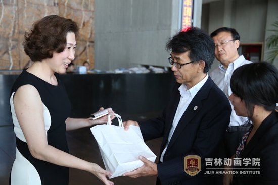 代表团在副董事长刘欣、国际合作与交流中心副主任鲍怡萍的接待陪同下,参观了学院的校史馆、博物馆,观看了学院宣传片。刘欣副董事长向代表团介绍了学院的组织结构图、学研产一体化人才培养模式,说到:“学院实行董事会领导下的院长负责制,同一董事长,不同董事会,分别管理学院和公司。学生在大三期间进入工作室和产业公司实习,提高了实践能力,得到用人单位的青睐。”森谷邦彦局长了解了我院的办学模式、就业情况后连连赞叹说:“非常了不起啊!”进入二楼博物馆展厅,代表团饶有兴致地欣赏着众多珍贵的作品手稿,在看到迪斯尼展区的《米老鼠和唐老鸭》时,在看到定格动画作品《礼物》的乡村农家小院场景时,在看到市面上几乎很难买到的多款老式游戏机时,森谷邦彦局长颇为感慨:“好怀念啊!能在这里看到。”